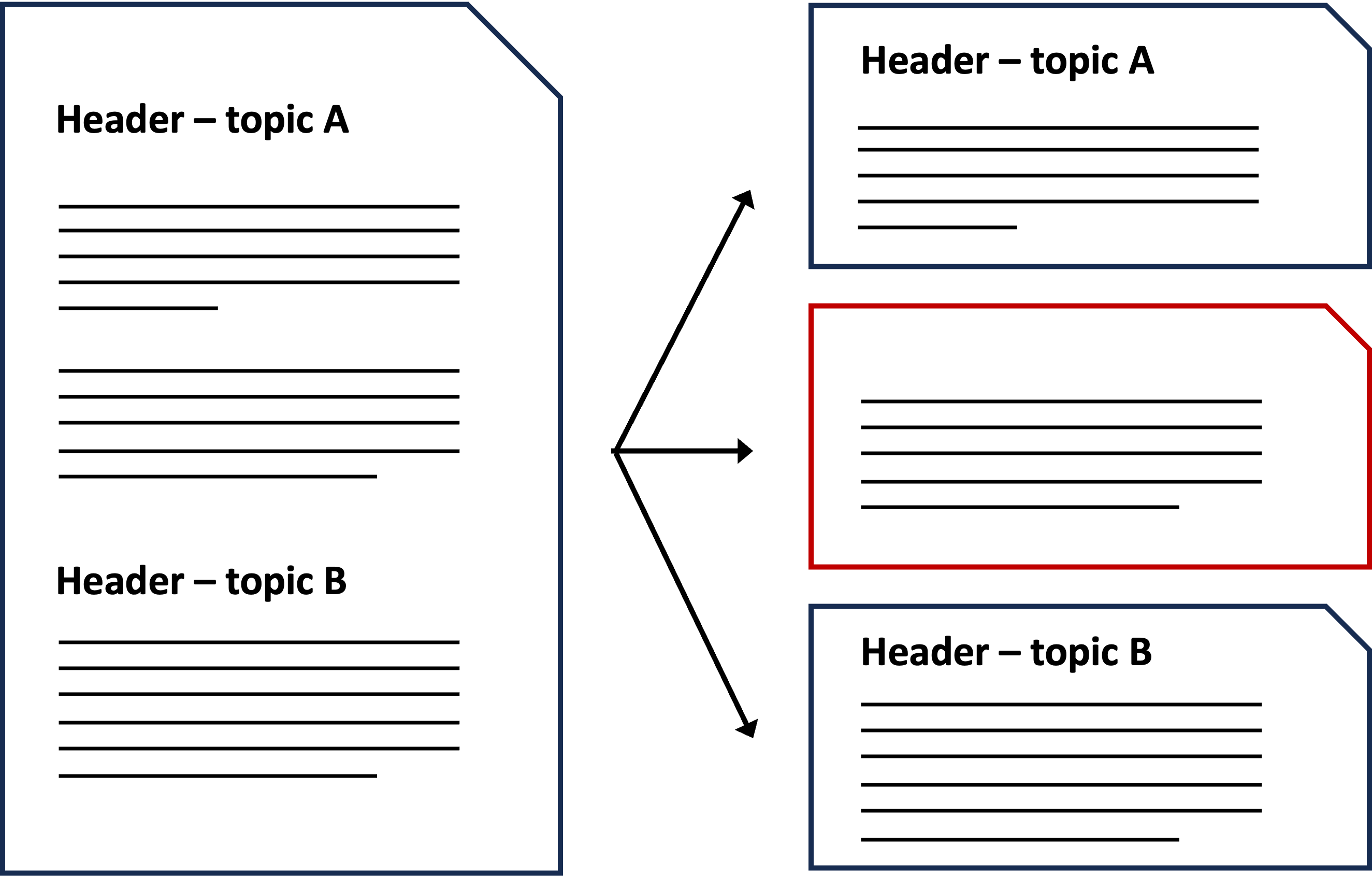 Enkelte tekstbiter kan bli skilt fra sin tilhørende underoverskrift og dermed miste viktig kontekst. Dette kan føre til at vektorrepresentasjonen av teksten blir mindre presis, og i noen tilfeller kan bitene til og med bli direkte misvisende når de tas ut av sin opprinnelige sammenheng.